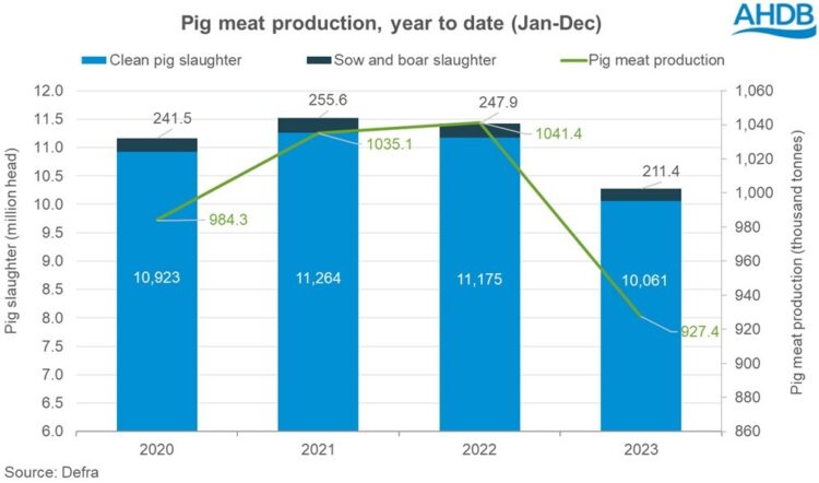 The December pig manufacturing determine intended that for the whole 12 months of 2023, the United Kingdom produced 927,400t of pig meat, an 11% 12 months on 12 months decline and the bottom annual quantity recorded since 2018.