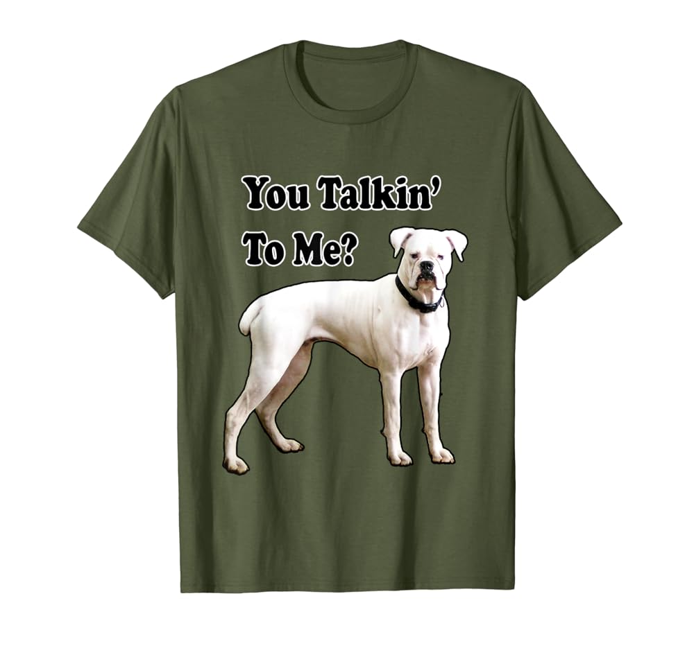 #21 – You Talkin’ To Me? White Boxer Canine with Angle T-Blouse
