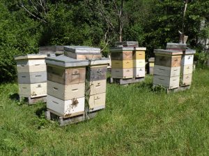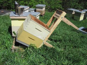 Kirk Webster positions his hives simply a ways sufficient aside that his home made bench will are compatible between each and every set of hives permitting him to paintings 4 colonies earlier than having to transport his bench to some other set of hives. Kirk turns 70 years outdated subsequent 12 months and says that if it wasn’t for this bench/hive lifter, he wouldn’t nonetheless be strolling as of late. Picture courtesy of Kirk Webster, Champlain Valley Bees and Queens.