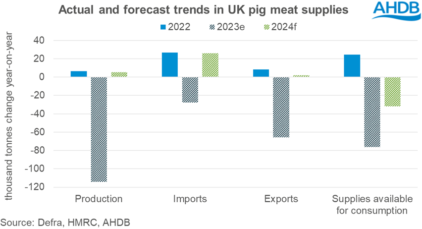 AHDB anticipates this pattern will proceed into 2024, with imported volumes of pig meat finishing the 12 months up 3% on 2023.