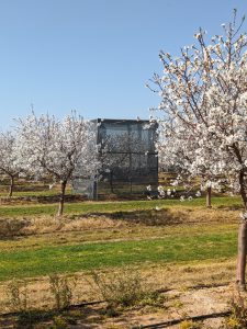 Caged almond tree all through the bee exclusion experiments (Photograph by way of E. L. Niño)