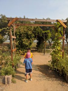 Guests to the UC Davis Bee Haven lawn. The orange tint of the picture is because of the heavy air air pollution from California wildfires.