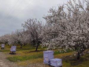 Honey bee analysis colonies used for analysis of supplemental forage in almond orchards (Photograph by way of E. L. Niño)