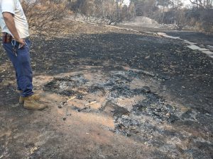 Remnants of 2 hives burned in a California wildfire in 2020. Handiest steel elements stay.
