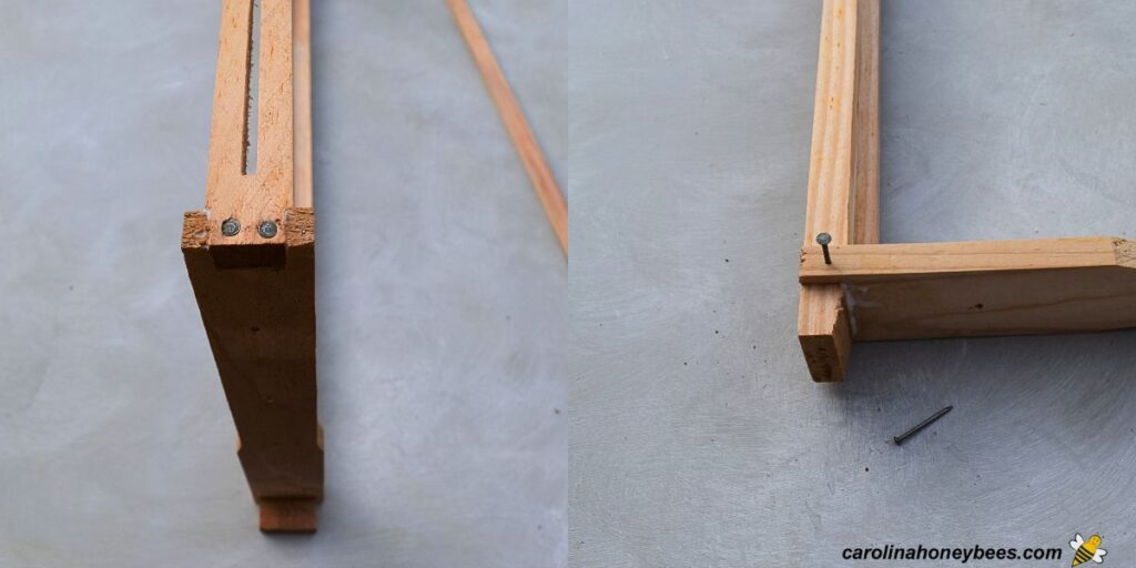 5. You aren’t completed relatively but. Whilst the glue continues to be rainy, put some neatly positioned nails within the frames (whole directions on the backside of this submit). Two nails within the most sensible and backside of every facet bar supplies a strong construction.