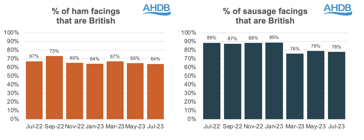 However for different pigmeat classes, the share of British merchandise on retail cabinets used to be down on a 12 months in the past. The determine for British bacon, at 55%, used to be additionally unchanged on Might, however down from 59% a 12 months in the past, whilst the 64% of British ham on show used to be down from 65% in Might and 67% in July 2022, and British sausage, at 78%, used to be down from 79% in Might and markedly underneath the 89% determine a 12 months in the past.