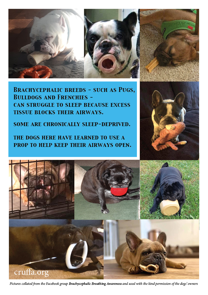 The canine at the poster have all been identified with BOAS and all actively search out an object with a purpose to sleep. A few of them have stopped doing it post-surgery.