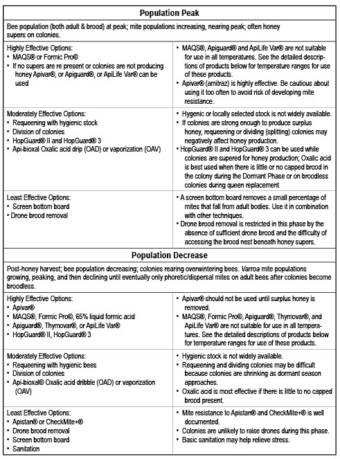 Other keep an eye on choices are suitable for every of the 4 inhabitants stages of the honey bee/varroa seasonal cycle. Beneath is a abstract of choices for every segment.