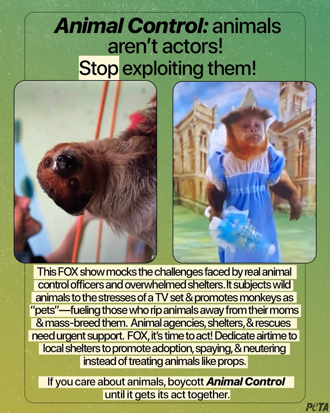 There’s by no means a humane manner for movie and TV productions to make use of actual wild animals such because the capuchin monkey and the sloth who’ve seemed in Season Two. Sloths are extraordinarily shy, nocturnal animals who would differently shun human touch, however presentations like Animal Regulate pressure them into shut proximity with their captors and matter them to the stresses of a TV set, the place they will bear over the top dealing with, loud noises, vibrant lighting, and noisy crowds of strangers.