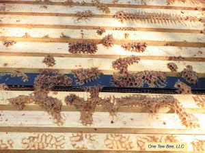 Determine 4. Not unusual burr combs on best of frames. It is a not unusual sight for beekeepers. Observe bee area isolating frames.