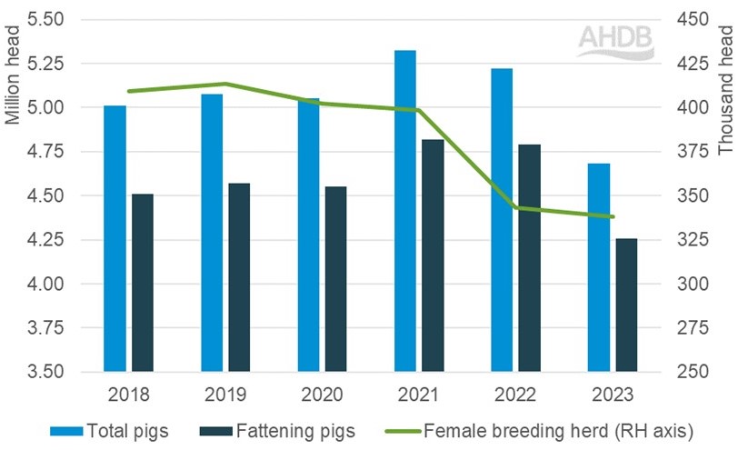 The United Kingdom pig inhabitants stood at 4.68 million head in June 2023, a 12 months on 12 months decline of 10.3%, reflecting the lack of 537,000 pigs. It’s the smallest pig inhabitants recorded in the United Kingdom since 2012.