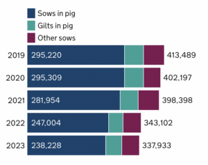 Following the dramatic decline noticed within the June 2022 survey, the whole breeding pig inhabitants has stabilised, falling through simplest 0.2% over the 12 months to 428,000 head.
